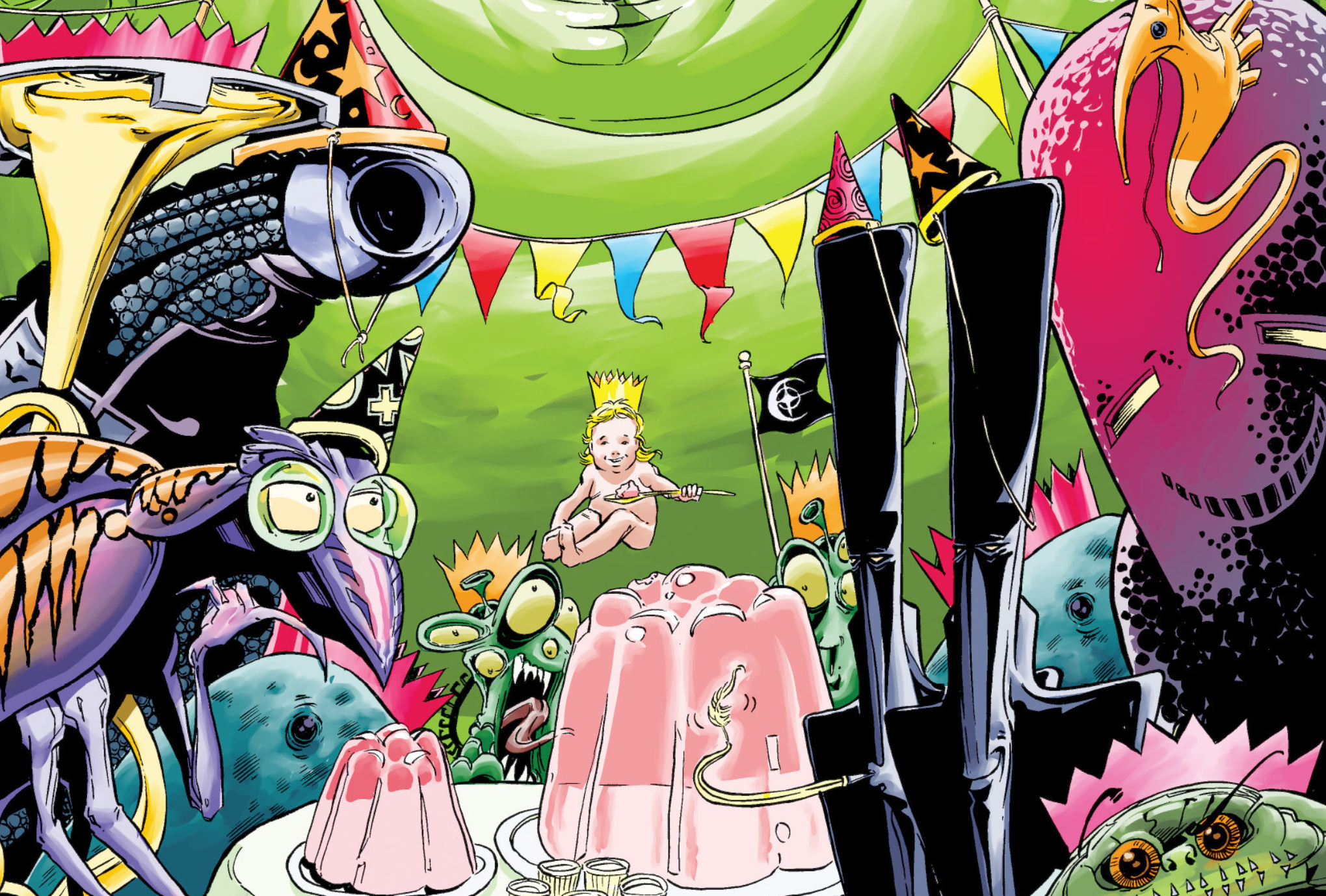 In Miracleman #4, Gaiman succeeds in marrying the comic book and the children’s book together, not just in its form by having the panel layout of certain pages take on the trapping of a children’s book, but by capturing within those pages a sense of wonderment and whimsy… along with cynicism, disillusionment, ennui, and more.