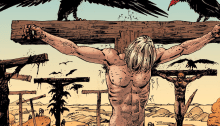 The Goddamned #4 is a purposeful parody of the Passion story, utilization and upending of Biblical imagery to argue for an antitheist theology.